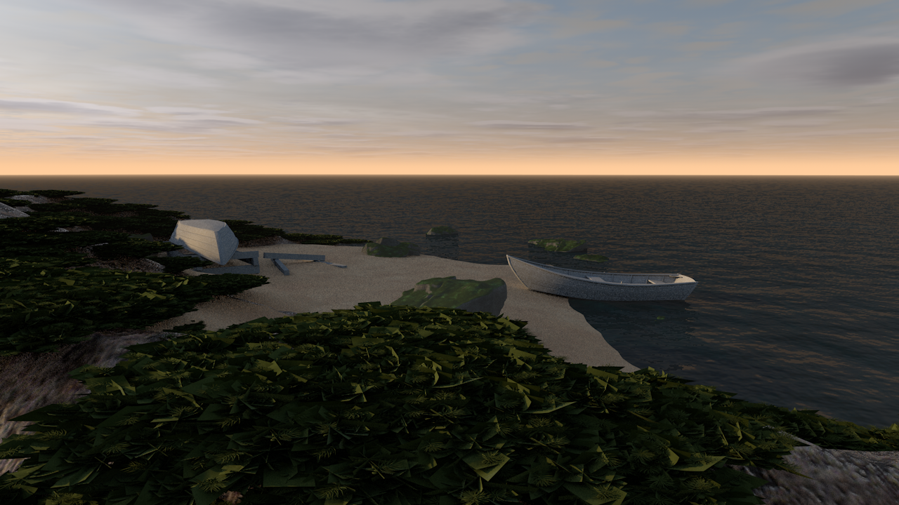 Une chaloupe blanche est échouée sur la grève. Une autre est remisée sur un support de bois. Intrigué.e, vous vous approchez. Rendez-vous en page