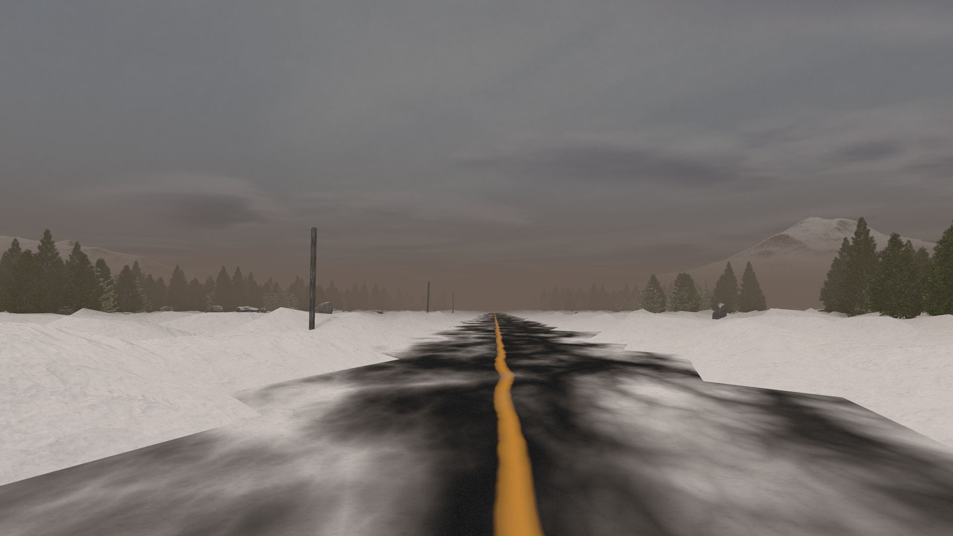 Rien de bien précis à vous dire sur ce segment de la route. Vers l'ouest, une montagne surplombe le paysage. Rendez-vous en page