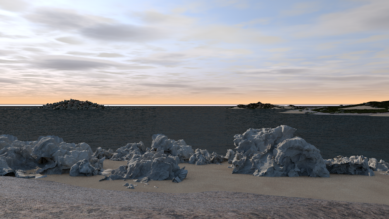 Vous êtes sur la rive de l'îlet. Rien de mieux à faire que de traverser vers l'autre îlet, qui a l'air beaucoup plus accueillant. Vous traversez donc, pour vous rendre en page