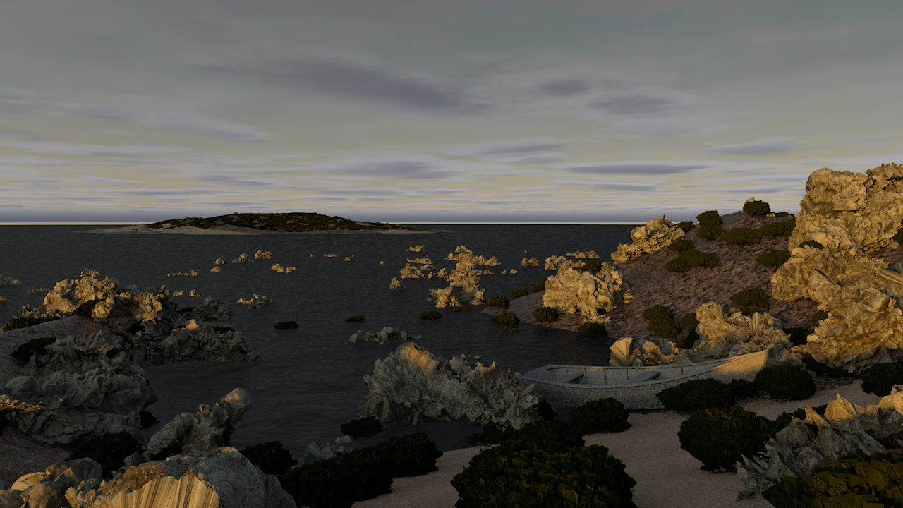 Vous échouez votre chaloupe sur la rive, après vous en être approché.e prudemment. Vous débutez votre exploration du nouvel îlet en page