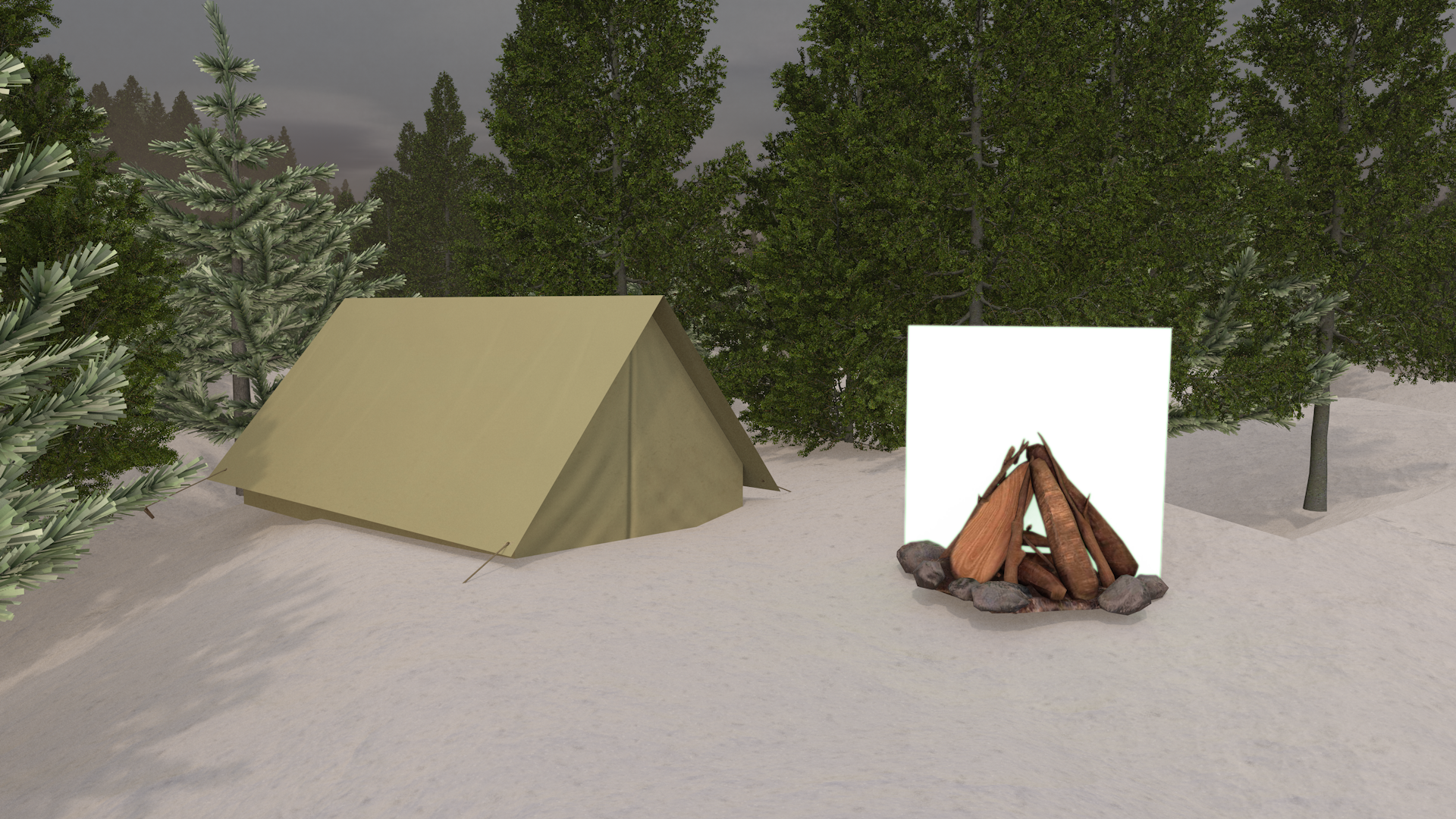 Vous réussissez tant bien que mal à monter votre tente (empruntée). Vous partez aussi un feu en rassemblant ça et là du bois sec. Les flammes vous réchauffent rapidement. Vous mangez les quelques vivres que vous avez pour reprendre des forces. Alors qu'une tempête de neige semble commencer, vous décidez enfin d'aller vous coucher, espérant qu'à l'aube vous trouverez une solution à cette errance. Rendez-vous en page