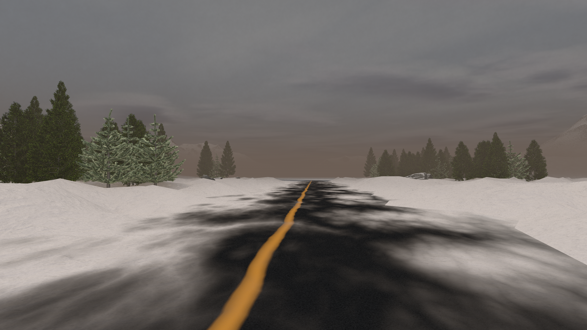 Marchant vers l'ouest, vous aboutissez à l'orée d'un nouveau champ enneigé. Rien de particulier à l'horizon, si ce n'est quelques montagnes solitaires. Poursuivez vers l'ouest en page