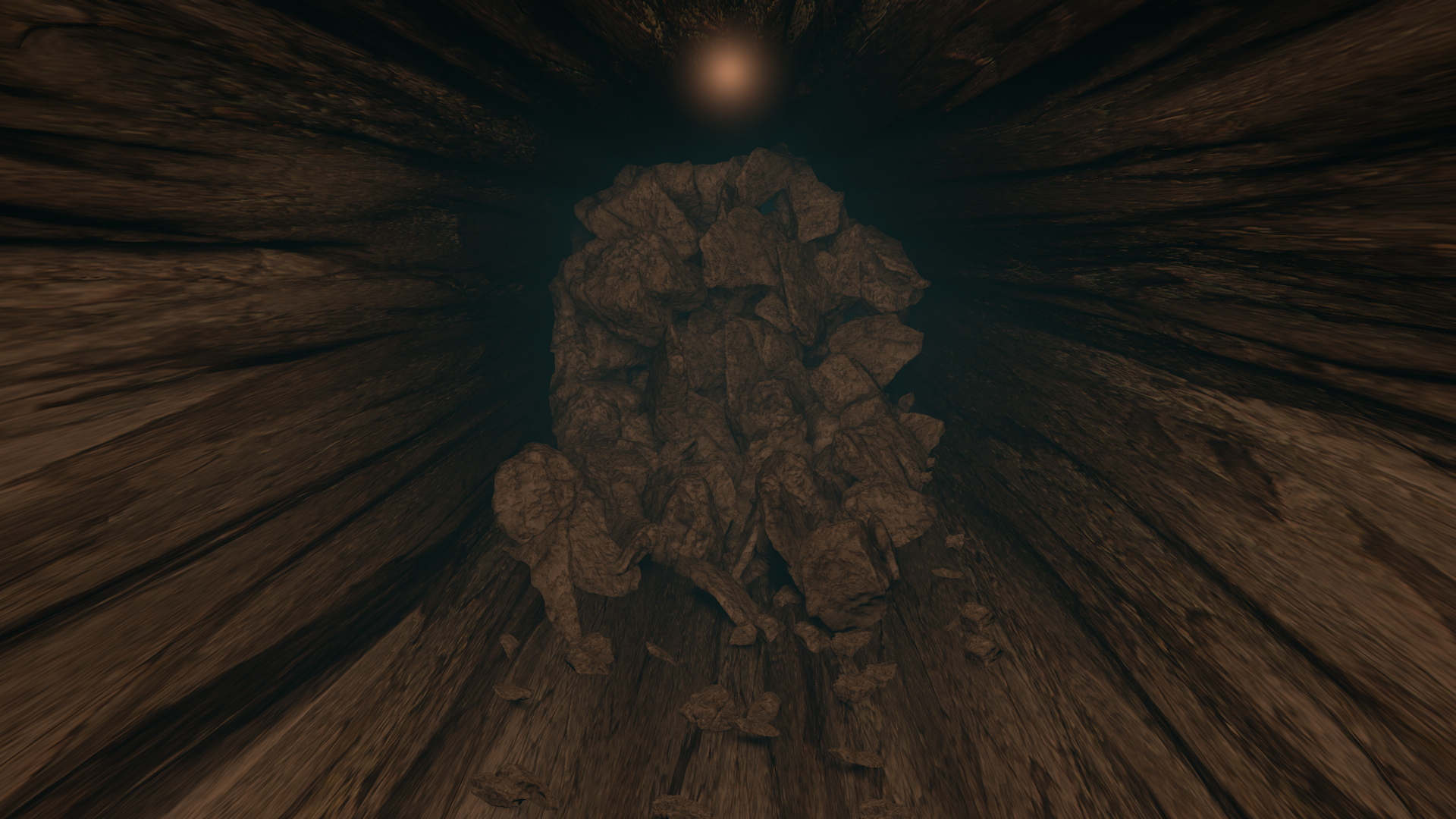 Vous émergez au bout du tunnel sur un éboulis de roches qui bloquent complètement votre chemin. Si vous décidez de tenter de dégager le passage, espérant qu'il débouche autre part, rendez-vous en page