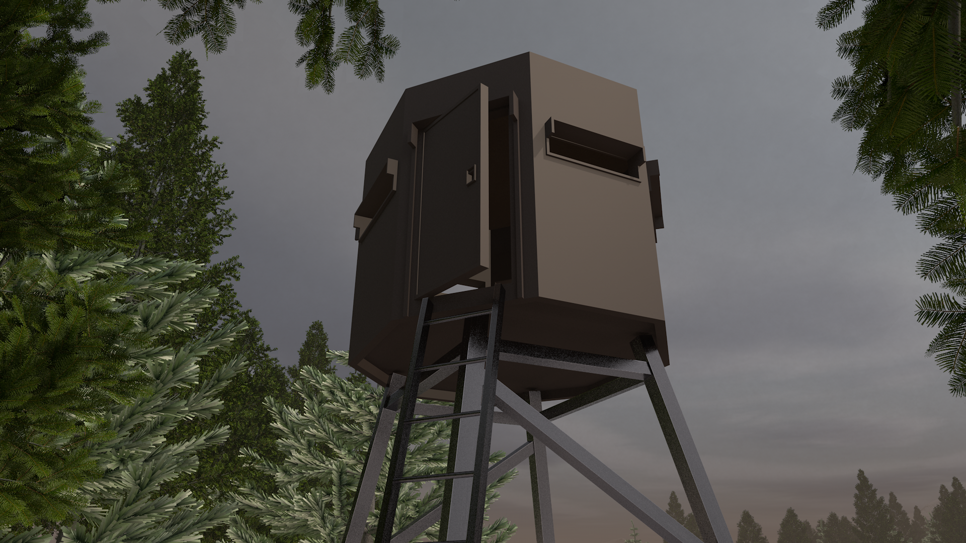 Vous approchez tranquillement du bâtiment. Vous ouvrez la porte délicatement, en jetant un oeil vigilant à l'intérieur. Il n'y a personne. Pour grimper dans l'échelle et entrer dans la tour d'observation, allez à la page